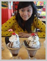 FRIDAY. the scheduled outing with my third year friends. Unfortunately, I didnt come. Luckily Ikee didnt too Ayon, we decided to spend the day together. We havent gone out for almost a year na siguro and its pretty exciting to be with her She wanted to have icecream kaya we went to Icebergs. While sitting, si ever matakaw Abby wanted FOOD kaya yon, we both had chili dog (which wasnt chili-ish at all). HAHAHA. Then we had whatever sundae(?) with oreo. Masarap kumain and masaya ako because I ate We went around Glorietta, sale sila so mejo jampacked ung area. We went to SM para mag tingin ng mga shelving para lalagyan ko ng nursing book collection ko. Hahah. Tas yon, we went sa may ground floor nag try ng clothes, girl thing. We both liked what we tried on pero yun nga, sa nursing di naman kailangan ng corporate attire. Hehe.